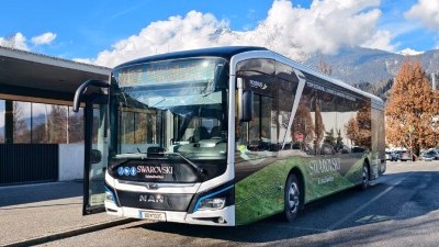 BD 1035 - erreicht hier in Wattens als Kristallwelten Shuttlebus die Swarovski Kristallwelten. Dieser MAN Lion's City 12 E-Bus verkehrt 6 mal pro